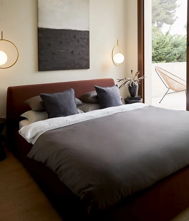 "Mystic Dusk" 베드룸은 도시적인 세련미와 편안한 휴식 공간이 필요한 이들에게 안성맞춤인 공간으로, 모던한 라이프스타일을 반영하는 동시에 개인의 취향과 고급스러움을 존중하는 디자인입니다.